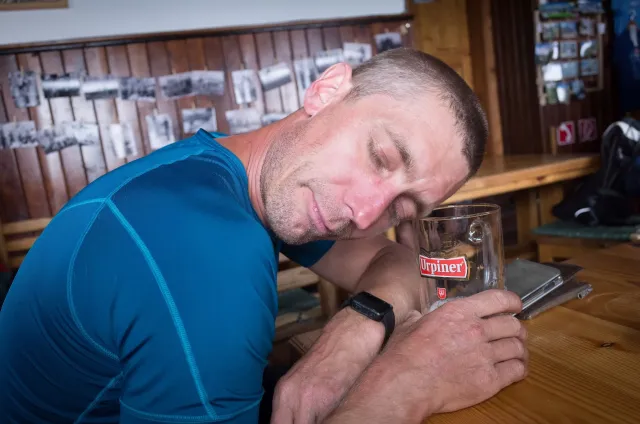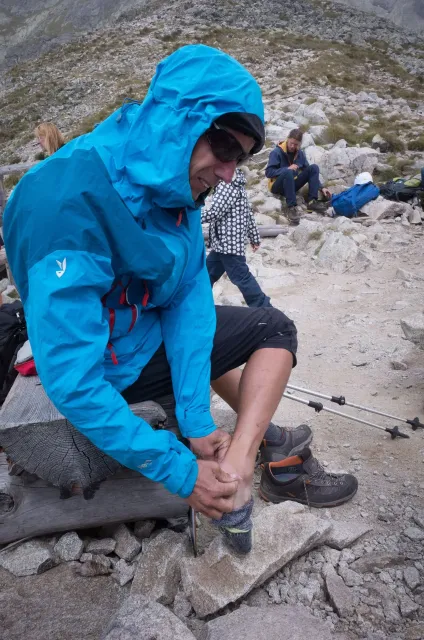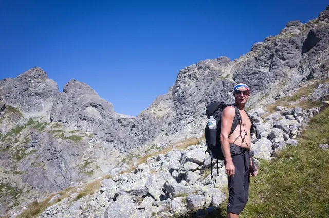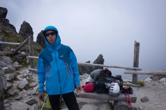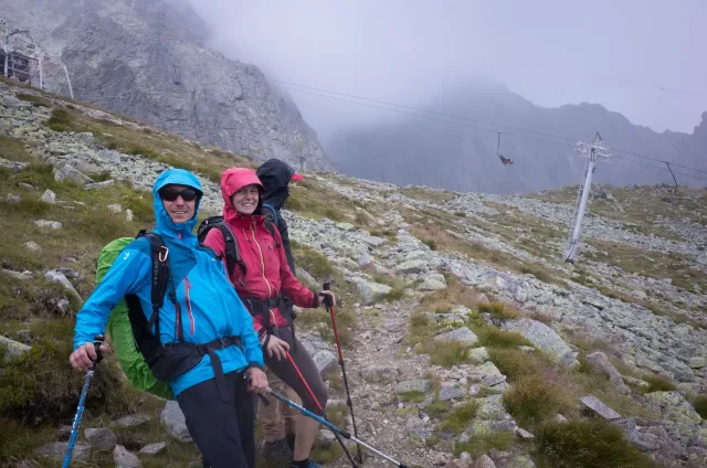 Až ráno sdělujeme všem dnešní cíl, abychom předešli zlým snům. Nástup bude totiž ještě delší než včera – Lomnický štít. Lanovky ze zásady ignorujeme, byť k nim během dopoledne, co z nás pot jen leje, zoufale vzhlížíme. Dorážíme tak po pár hodinách na Skalnaté sedlo sice krapet znaveni, ale natěšeni na lezení. To je ten správný okamžik, co začíná pršet. Jen tak jemňounce, stačí to však, aby kameny začaly podkluzovat a tak otáčíme. Honza šetří svá kolena před sestupem lanovkou, my jej stíháme pěšky. Dne zbývá ještě pořádnej kus, a tak si necháváme doporučit termální koupaliště ve Vrbově. Bereme to přes Kežmarok, aby si každý mohl koupit něco důležitého. Hanka nanuka, kluci pivo a já plavky. V různých bazénech jsme namočeni prakticky celé zaplacené tři hodiny. Všichni se tu v teplé vodě blaženě usmívají a jsou milí a příjemní až na jednoho, co mě sprdne, že mu křížím plaveckou dráhu. Je to Čech. Večer se na Štajgra různě těšíme (nevím, co proti němu ostatní mají) a na noc si raději stavíme něco proti dešti. Zbytečně.