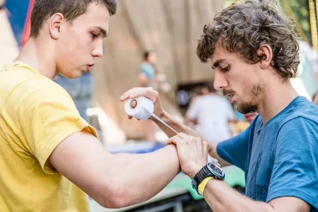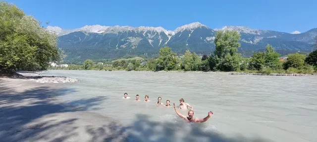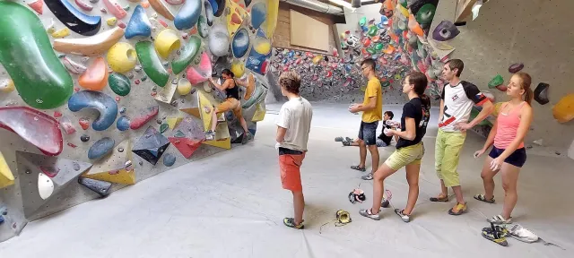 Kletterzentrum Innsbruck je jedno z nejlepších tréninkových center na světě a nabízí velké množství chytrých a „vymakaných“ boulderů. A kdyby ne, vymyslí je trenér David Urbášek. K radosti všech se ukázalo, že trénink začíná brzy nést ovoce. Nejviditelnější to bylo v počtu odřenin, spálenin, modřin a „zatejpovaných“ prstů. Naštěstí se co chvíli lezeckým centrem rozlehly i radostné výkřiky z dosažených „topů“. Regenerační procesy posílili otužilí jedinci v ledovcovém toku Innu, který ani v parných dnech nepřekračuje 4°C. Krev rozproudí i basket, druhý nejoblíbenější sport našeho soustředění.