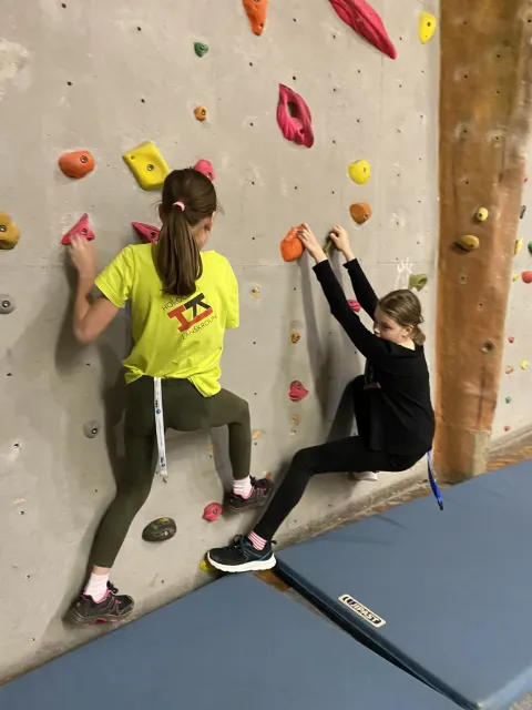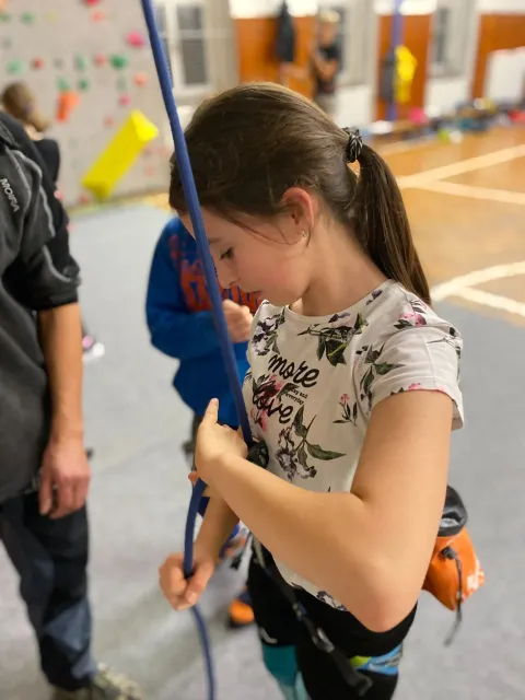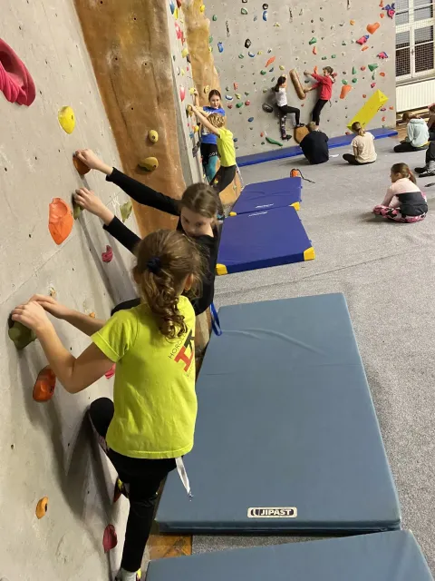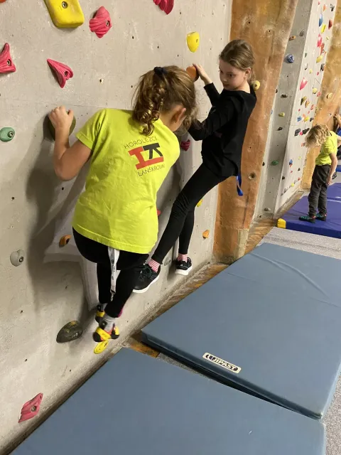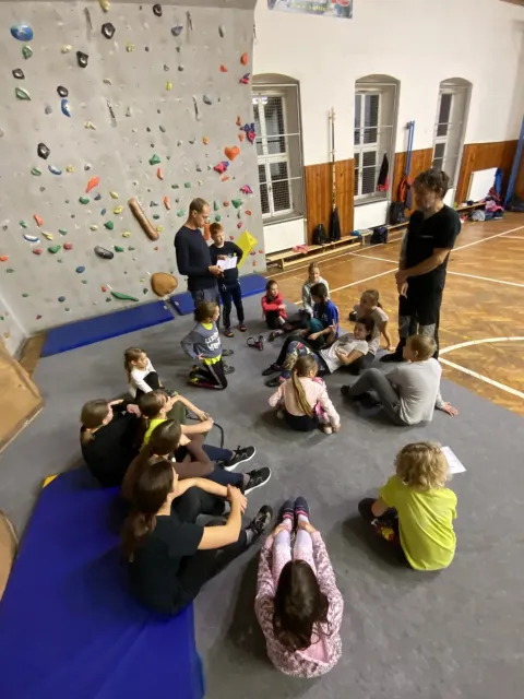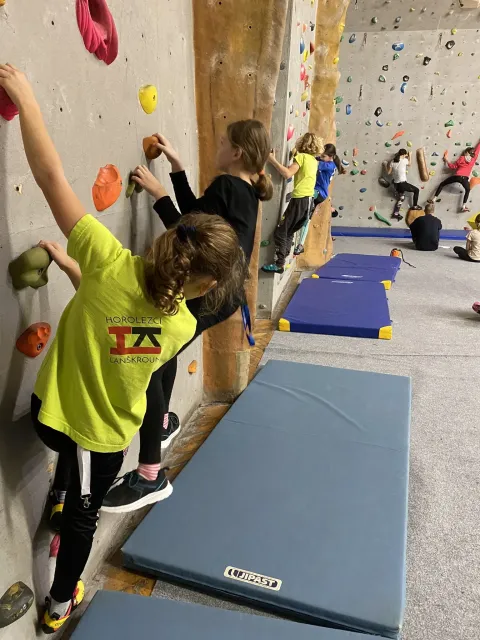 Už nám proběhly čtyři kroužky, děti si stačily pojít seznámením se stěnou, utkat se ve velmi oblíbeném turnaji v ocáskové a poslední kroužek proběhl ve znamení nácviku na nadcházející závod OMC. Takže se především lezlo na obtížnost, rychlost a boulderovalo.