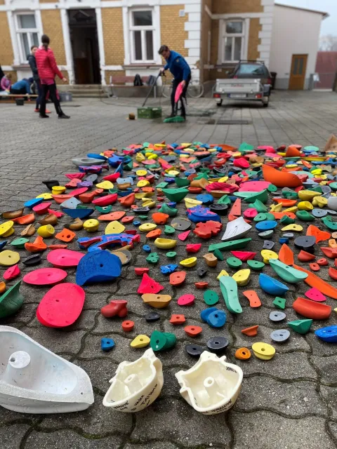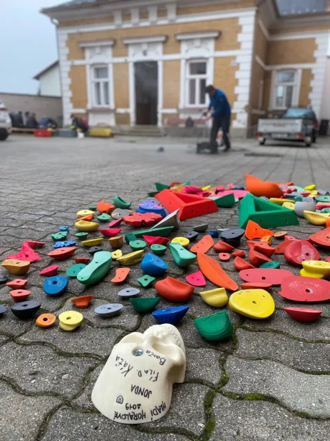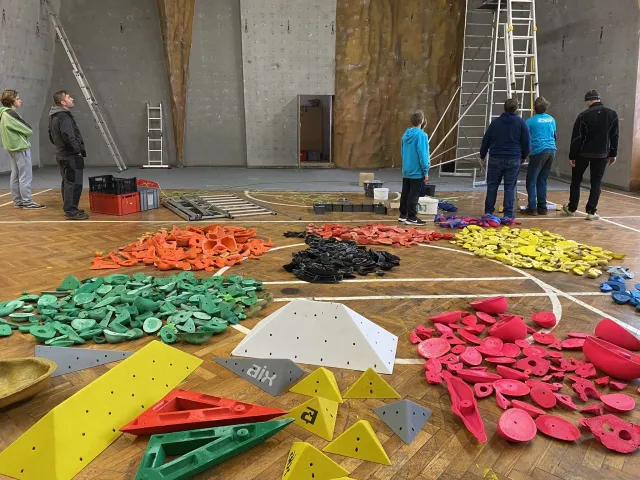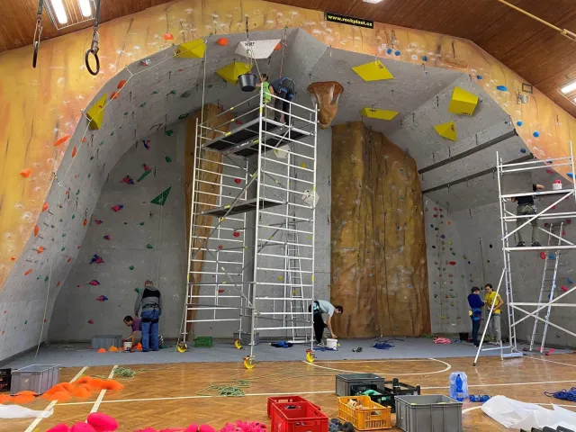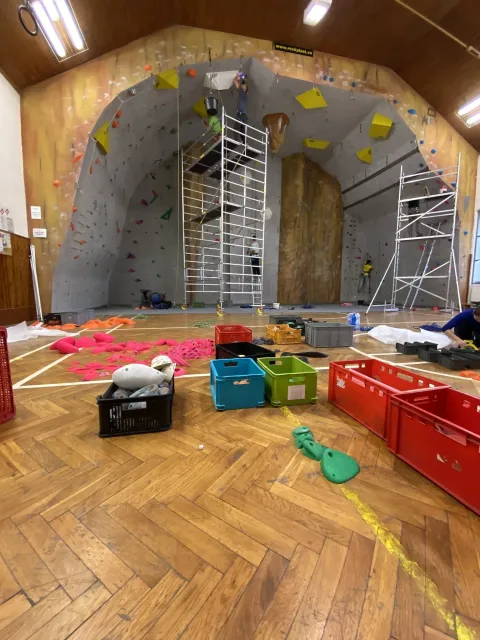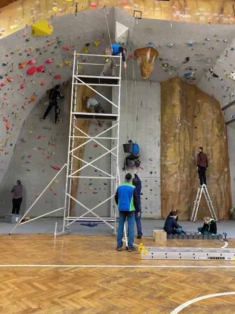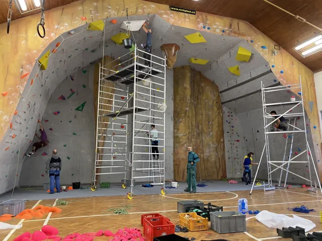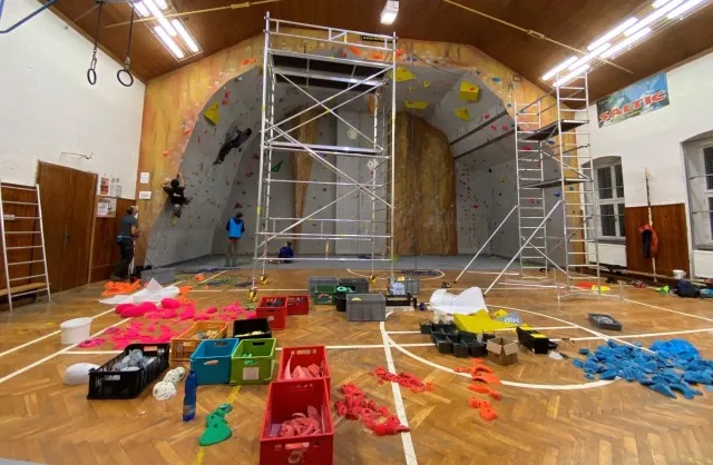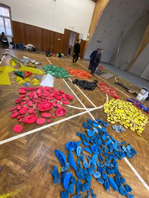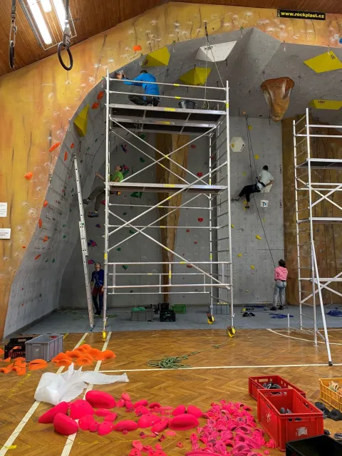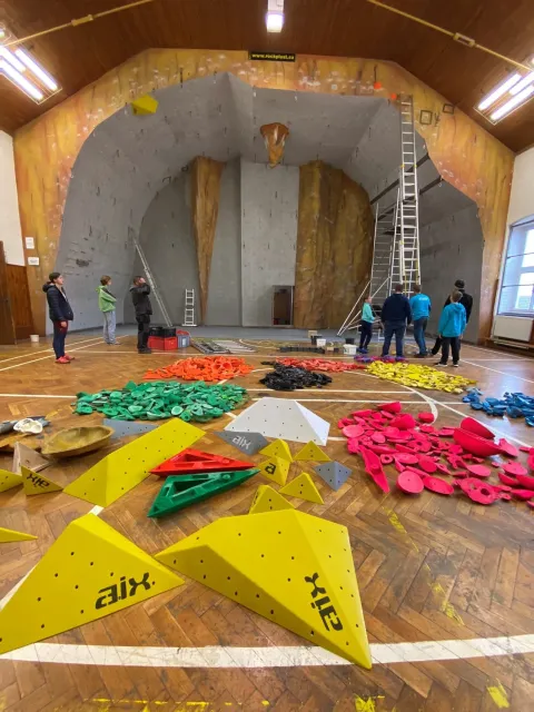 Sundat chyty, umýt a znovu nahodit na stěnu na závody OMC a zimní sezónu.