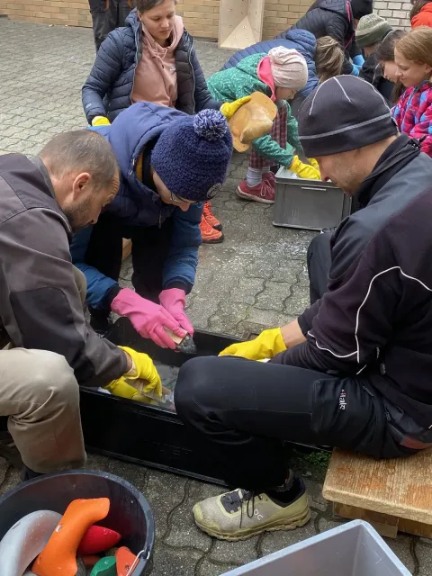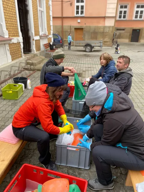 Pozvánka na sklizeň chytů zněla tak lákavě, že dorazilo bez jednoho třicet ochotných česáčů a umývačů. Všem patří velký dík, speciálně dětem z kroužků a jejich rodičům, kteří byli ochotni si v sobotu přivstat a přidat ruku ke společnému dílu. Do oběda bylo hotovo a večer už mohly začít růst pod rukama stavěčů nové cesty.