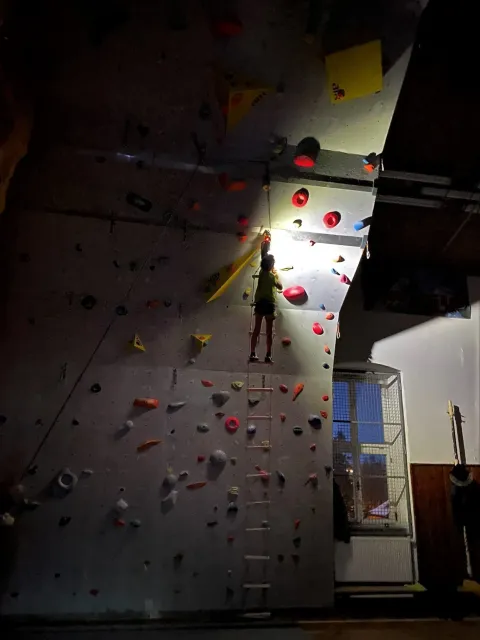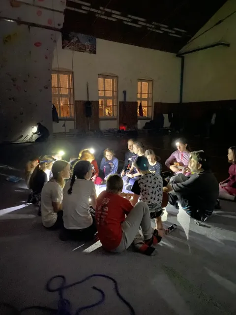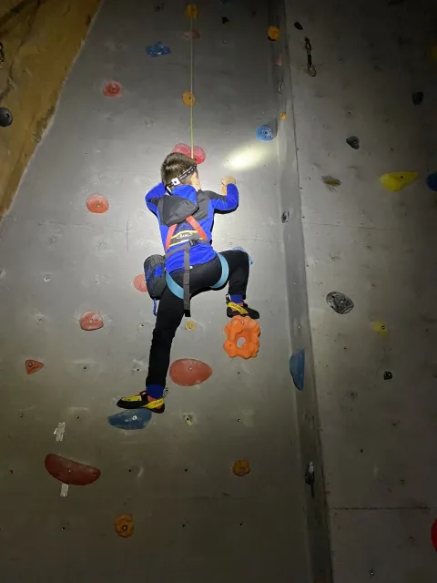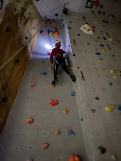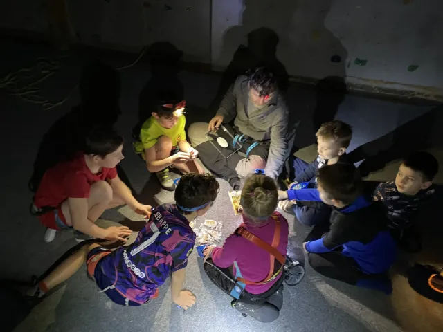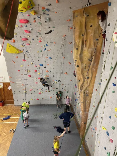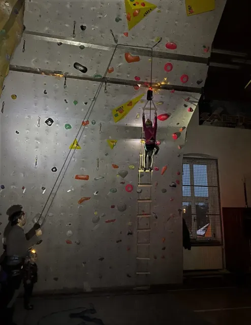 Dva dny před Štědrým dnem děti čekalo poslední letošní kroužkové lezení. Všichni dorazili vybaveni čelovkami, někteří i cukrovím a hudebními nástroji. Holky se předháněly, kolik že už mají napečeno druhů cukroví, jeden by jich ani tolik neuměl vyjmenovat, natož napéct. S nejmenšími jsme lezli po tmě, na konci každé cesty je čekalo světýlko a malá odměna. Starší si zařádili při rozcvičce, neboť jsem jim nachystala závod v surfování. Nakonec jsme místo závodu museli spojit všechny síly dohromady, aby se nám to povedlo. Pak tradiční lezení s čelovkami a na úplný závěr několik málo (Michal ze třetího kroužku byl neúprosný) koled, cukroví a hurá domů ke stromečkům.