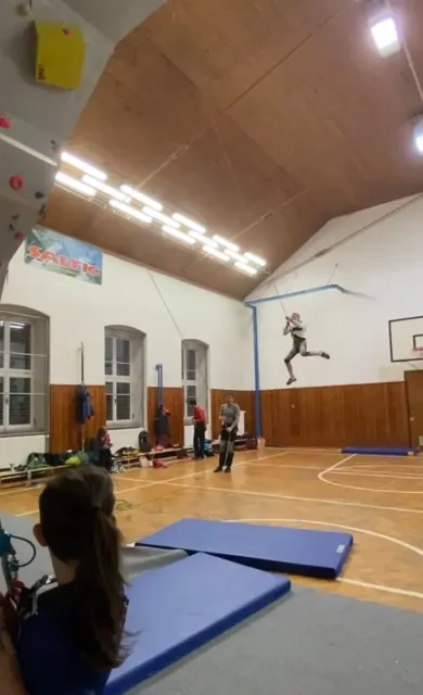 Vlastně, ještě pátek. Fous s Petrem pro děti, které nedorazí na štědrodenní jump připravil jump a andělská křídla na páteční polezení. Děti máme odvážné, takže se skákalo o 106.